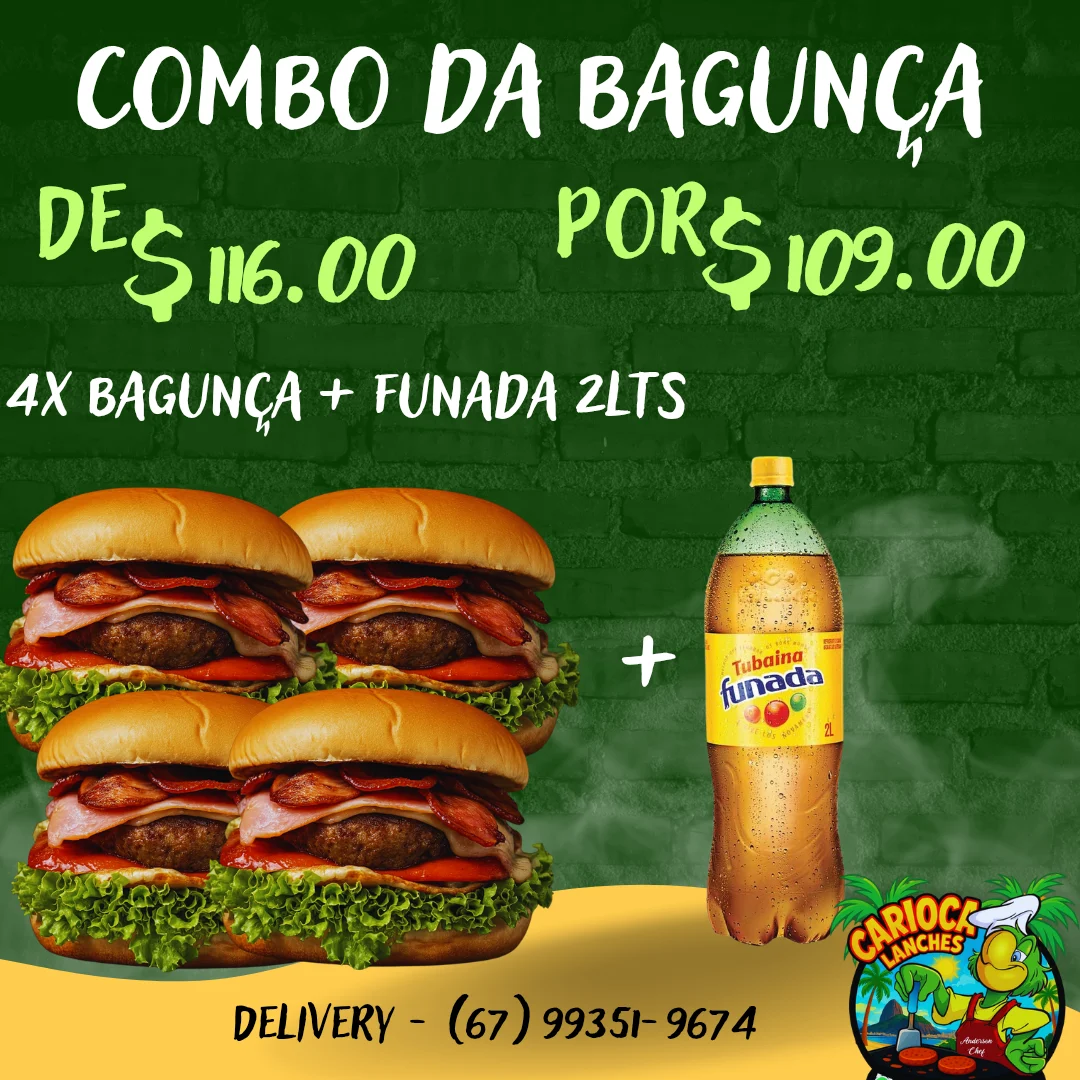 Acompanha 2 X-Bagunçado + guaraná 1lt