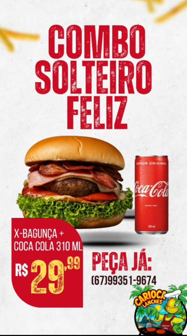 Acompanha 1 X-Bagunça + 1 Coca-Cola 310ml