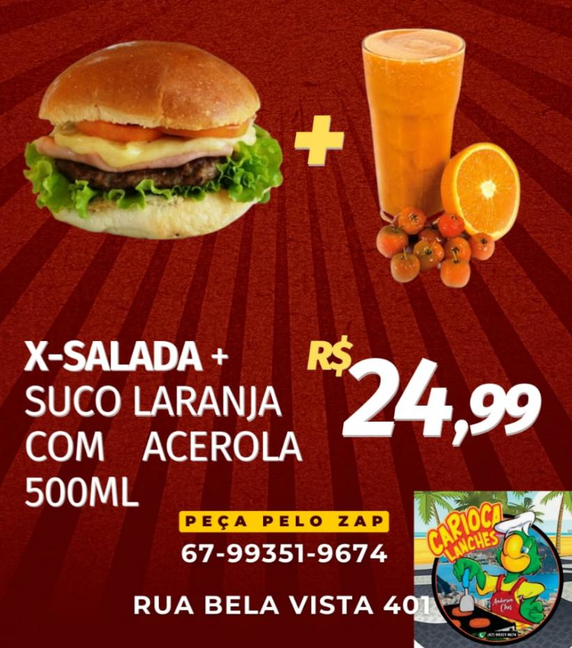 Acompanha 1 x- Salada + Suco de Laranja com Acerola 500ml