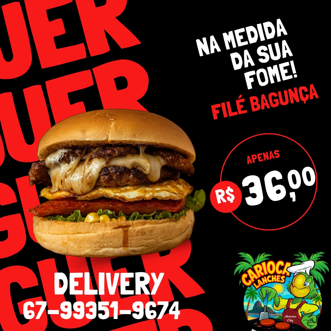 Pão, maionese caseira, Filé mignon, hambúrguer bovino de 100g, calabresa, ovo, salsicha, milho verde, mussarela, alface e tomate.