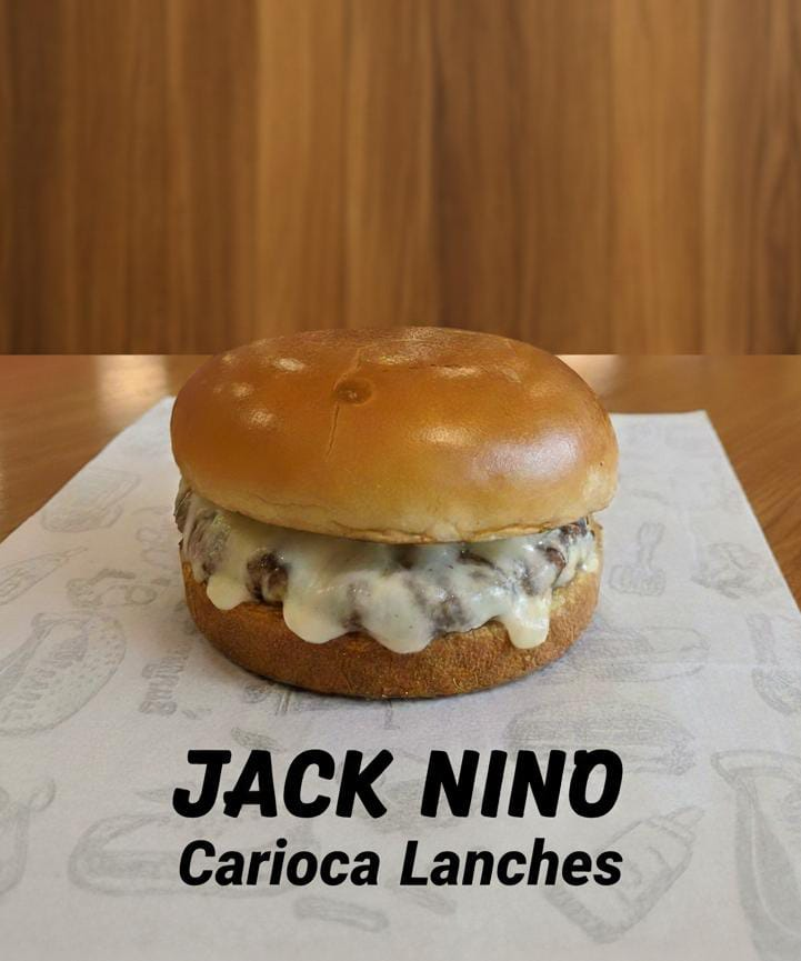 Pão de brioche artesanal, molho american, hambúrguer bovino de 100g, queijo cheddar, bacon, cebola roxa, picles, alface e tomate.