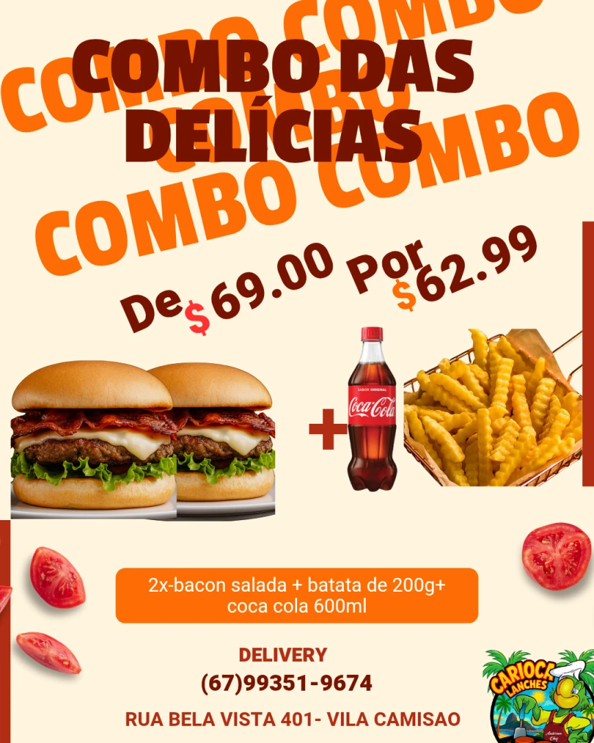 Acompanha 2 X-Bagunçado + guaraná 1lt